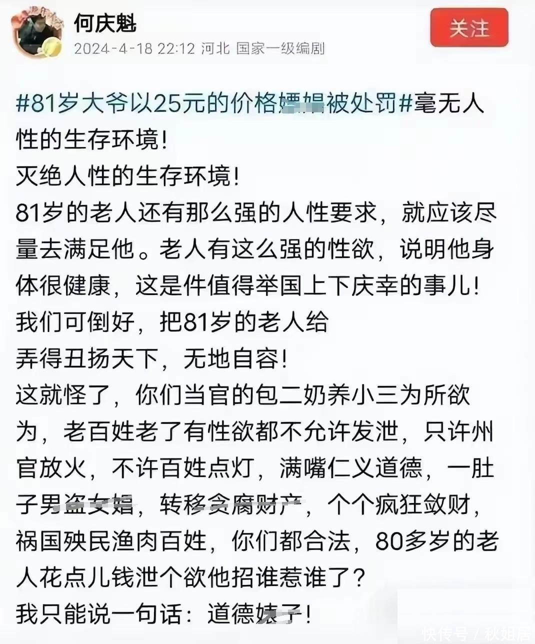 6. 就在此事持续发酵之际,一位年近八旬的老人意外现身发声——他就是何庆魁。
